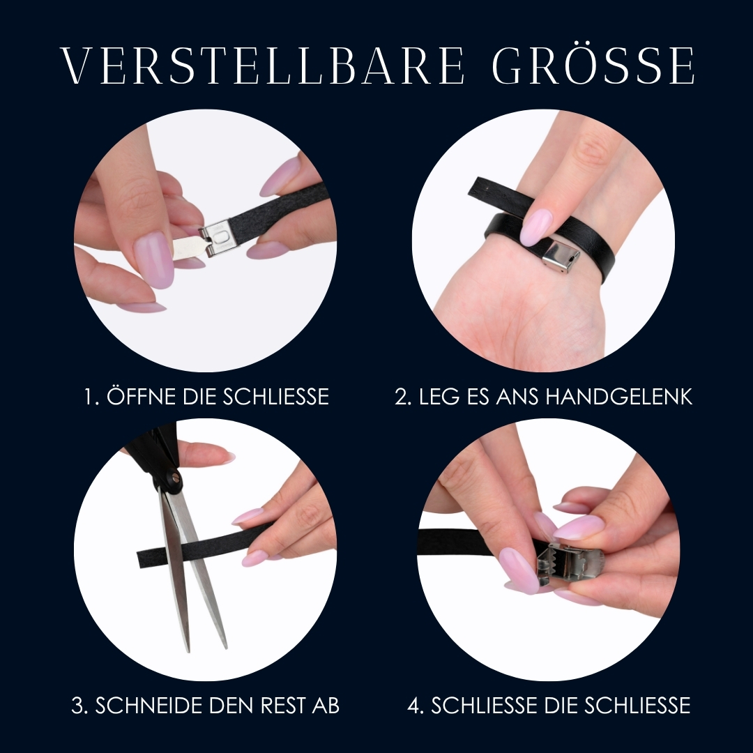 Material des Armbandes: Leder, hochglanzpolierter Edelstahl